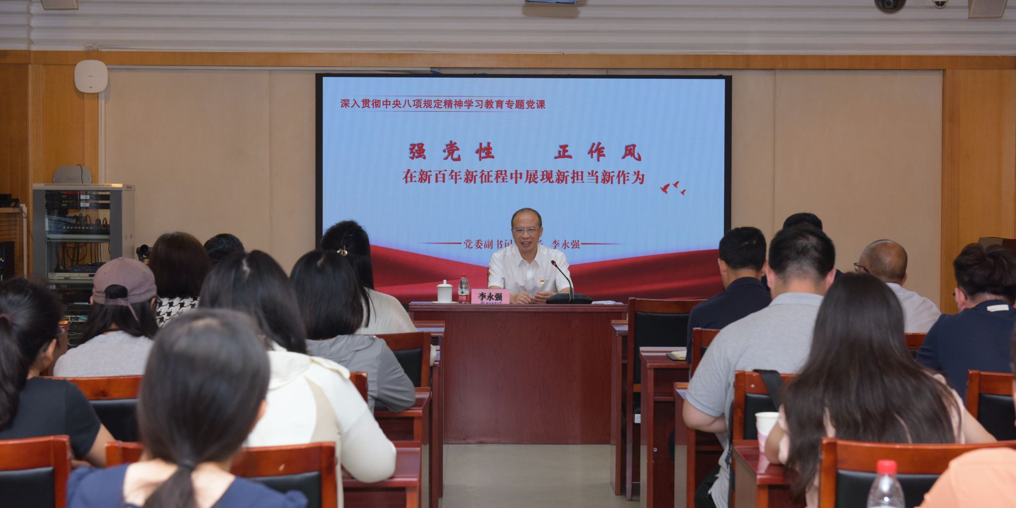 7月9日,黨委副書記、校長李永強在騰驤樓101會議室,以《強黨性 正作風 在新百年新征程中展現新擔當新作...